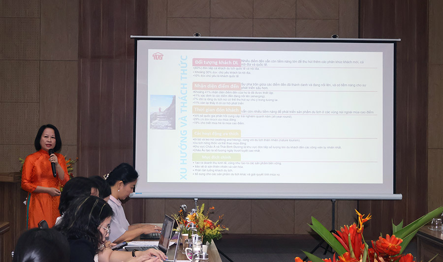Phát biểu đề dẫn Hội thảo, ThS. Nguyễn Thị Lan Hương – Viện VHNTTTDLVN cho biết, trong bối cảnh du lịch Việt Nam đang nỗ lực phục hồi và phát triển mạnh mẽ sau đại dịch, nhu cầu về các loại hình du lịch nghỉ dưỡng gắn với thiên nhiên, chăm sóc sức khỏe và trải nghiệm văn hóa ngày càng gia tăng. Du lịch nghỉ dưỡng núi – một trong những tiểu loại hình đặc thù – đang trở thành xu hướng được nhiều địa phương, doanh nghiệp quan tâm. Với lợi thế về cảnh quan thiên nhiên hùng vĩ, hệ sinh thái đa dạng, không gian văn hóa bản địa đặc sắc, các vùng núi của Việt Nam có tiềm năng to lớn để phát triển các sản phẩm nghỉ dưỡng chất lượng cao, khác biệt và bền vững.