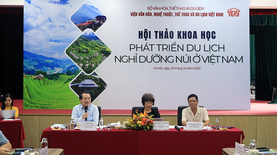 (TITC) – Sáng ngày 16/10, tại Hà Nội đã diễn ra Hội thảo khoa học “Phát triển du lịch nghỉ dưỡng núi tại Việt Nam”. Chủ trì Hội thảo có PGS.TS. Nguyễn Thị Thu Phương – Viện trưởng Viện Văn hóa, Nghệ thuật, Thể thao và Du lịch Việt Nam; TS. Hà Văn Siêu – Phó Cục trưởng Cục Du lịch Quốc gia Việt Nam.