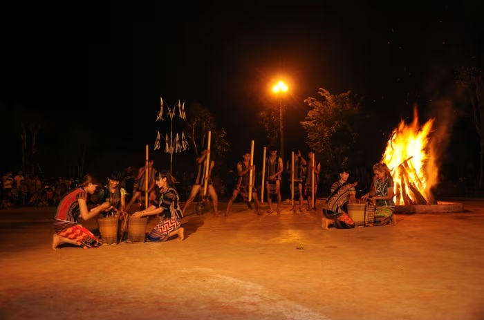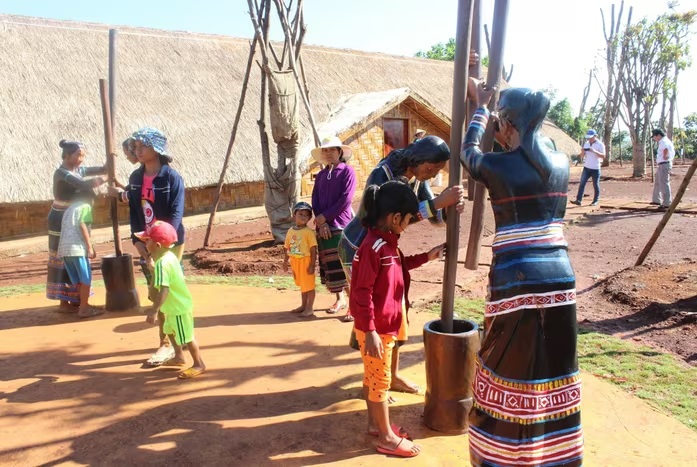 Nơi đây trưng bày hiện vật, tái hiện đời sống cộng đồng và phục dựng hình ảnh “tiếng chày nuôi quân”. Không chỉ được nghe kể lại những trang sử hào hùng, mà du khách đến đây còn được tham gia nhiều trải nghiệm thú vị: nghe sử thi, thưởng thức cồng chiêng, giã gạo bằng chày gỗ, tham dự lễ hội truyền thống hay khám phá ẩm thực địa phương.