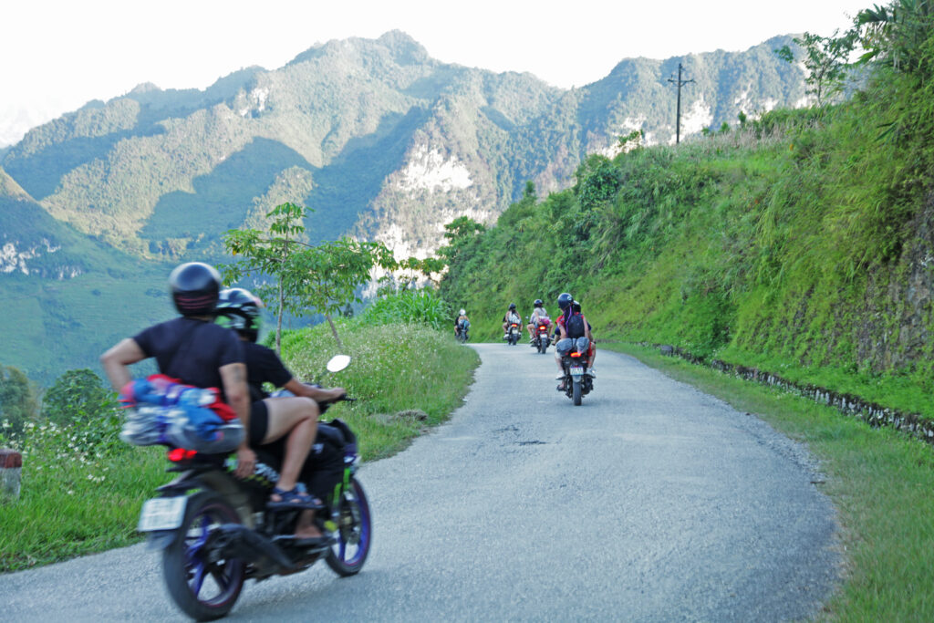 It takes about three hours from Ha Giang City to reach Du Gia, but the journey itself is a reward. The winding mountain roads, thrilling passes, and “M-shaped” curves surrounded by majestic limestone peaks and serene valleys dotted with ethnic villages make the ride an unforgettable adventure for motorbike enthusiasts and nature lovers alike.