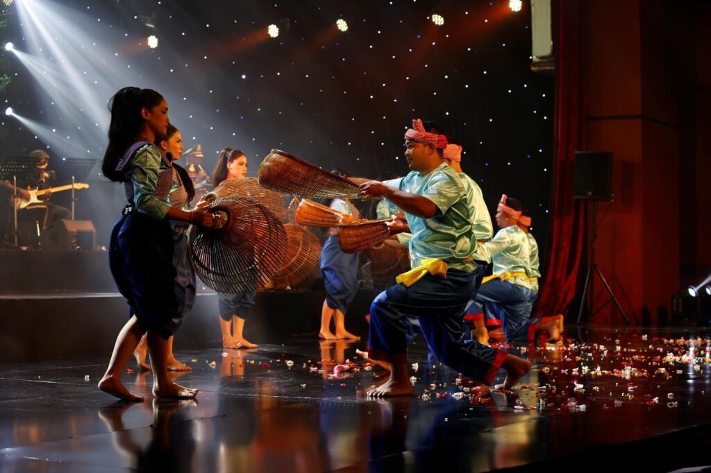 Khmer folk dance featuring bamboo fish traps, reenacting the rhythm of everyday working life