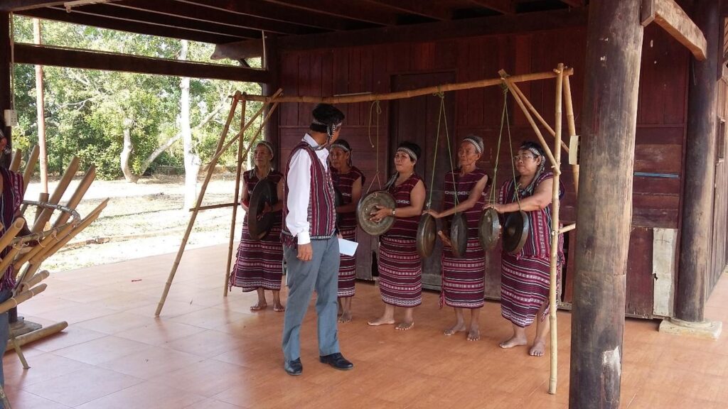 Music holds a special place in the Chau Ro’s spiritual life. Their gong ensembles, with their majestic, echoing tones, are central to major ceremonies and festivals. The sound of the gongs symbolizes unity, connecting humans with the divine and expressing the collective strength of the community. Even today, the art of gong performance remains a living tradition, carefully preserved and taught to the younger generation, ensuring that the music continues to resonate across time.