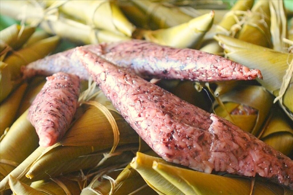 Trong kho tàng ẩm thực độc đáo ấy, hai món bánh truyền thống nổi bật nhất là a quát (bánh sừng trâu) và a deep man (bánh nếp vừng). Bánh a quát không chỉ là món ngon mà còn mang ý nghĩa văn hóa sâu sắc, là biểu tượng cho tình yêu và sự gắn kết bền chặt. Theo truyền thống, mỗi cô gái Tà Ôi khi về nhà chồng đều tự tay làm một cặp bánh a quát: một chiếc lớn tượng trưng cho chàng trai, một chiếc nhỏ tượng trưng cho cô gái. Bánh được gói khéo léo từ nếp nương và lá chuối, mang trọn sự chăm chút và tâm huyết cho ngày vui trọng đại.