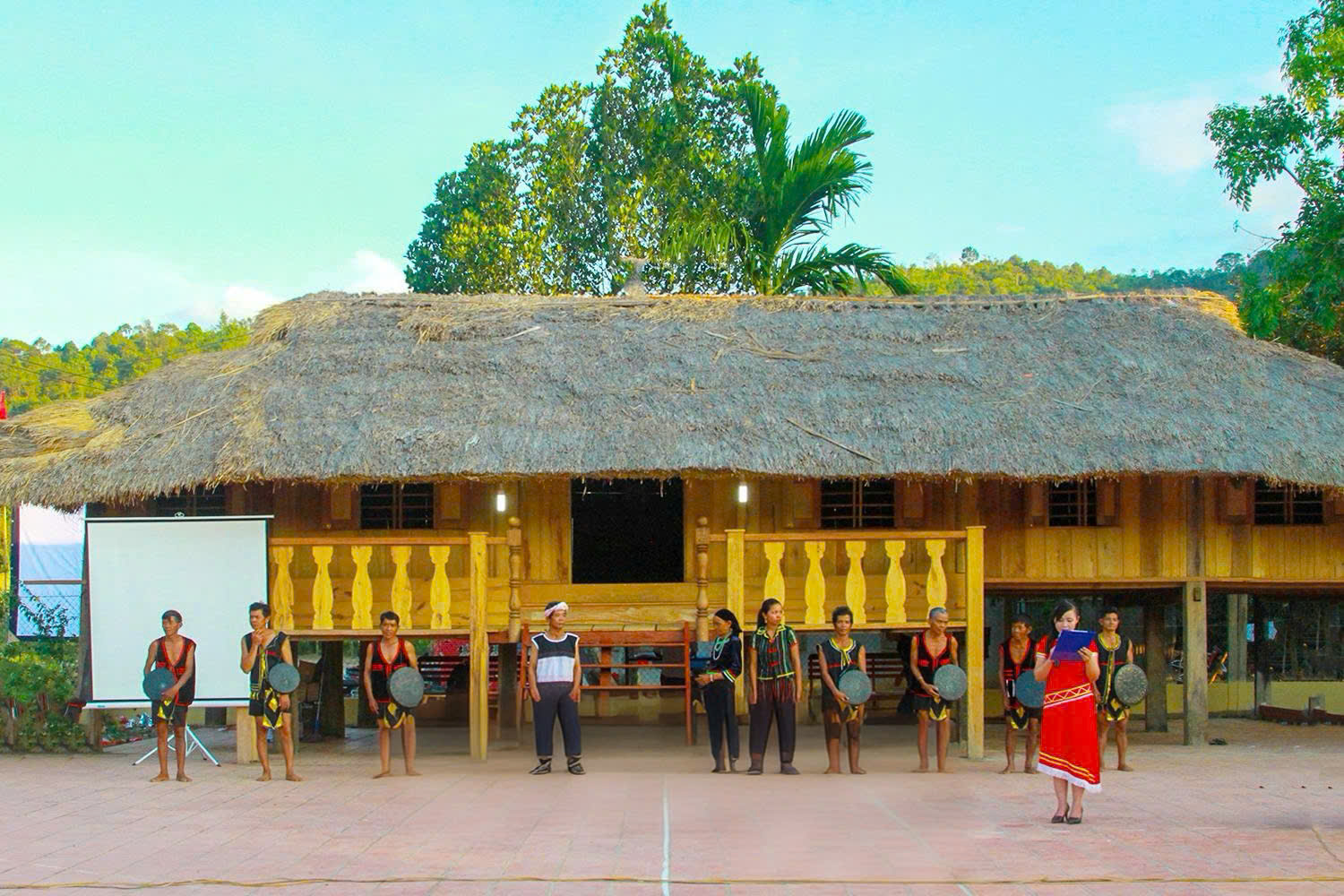 Nhà dài truyền thống thôn Hòn Dung – nơi thường diễn ra các hoạt động văn hóa cộng đồng của người dân địa phương