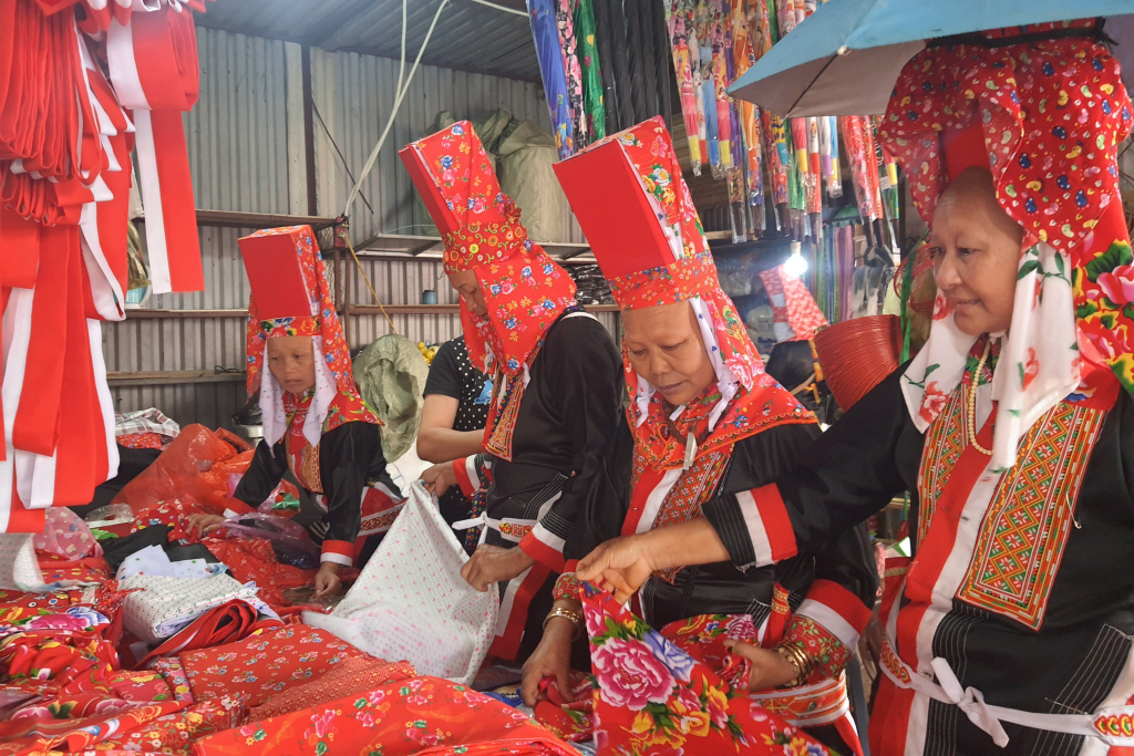 Bà con xã Hoành Mô duy trì thói quen mặc trang phục truyền thống trong các hoạt động hàng ngày